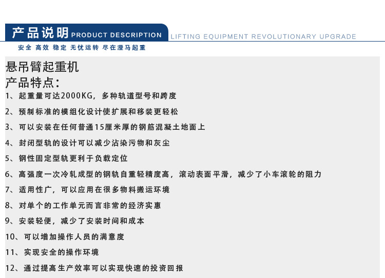 您好!欢迎来到靖江澄马起重机械有限公司官网!关键词:悬臂吊 悬臂起重机 移动式旋臂吊 独臂吊 平衡吊