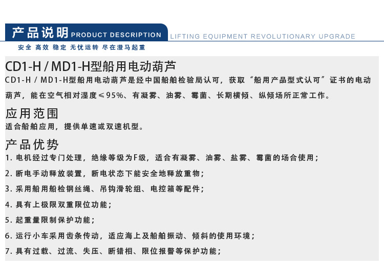靖江澄马起重机械有限公司是电动葫芦、悬臂吊、升降设备、机械配件等产品专业生产加工的公司,拥有完整、科学的质量管理体系。靖江澄马起重机械有限公司的诚信、实力和产品质量获得业界的认可。欢迎各界朋友莅临参观、指导和业务洽谈。