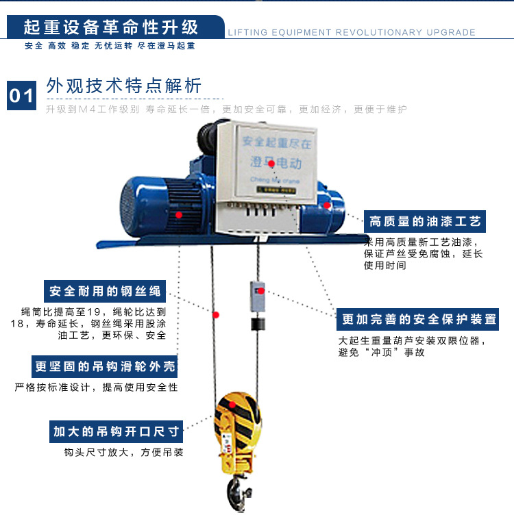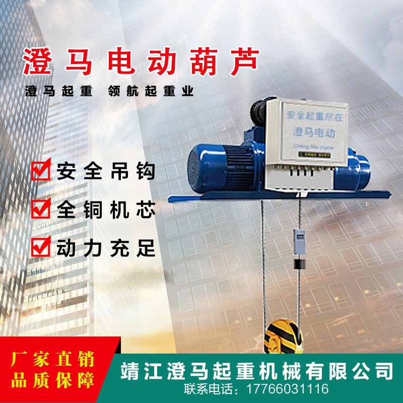 靖江澄马起重机械有限公司是电动葫芦、悬臂吊、升降设备、机械配件等产品专业生产加工的公司,拥有完整、科学的质量管理体系。靖江澄马起重机械有限公司的诚信、实力和产品质量获得业界的认可。欢迎各界朋友莅临参观、指导和业务洽谈。
